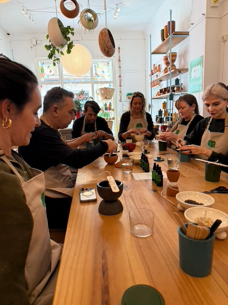 - Learn about essential oils, wax types, melting, setting and pouring. Then choose your ceramic container and create your own beautiful home accessory