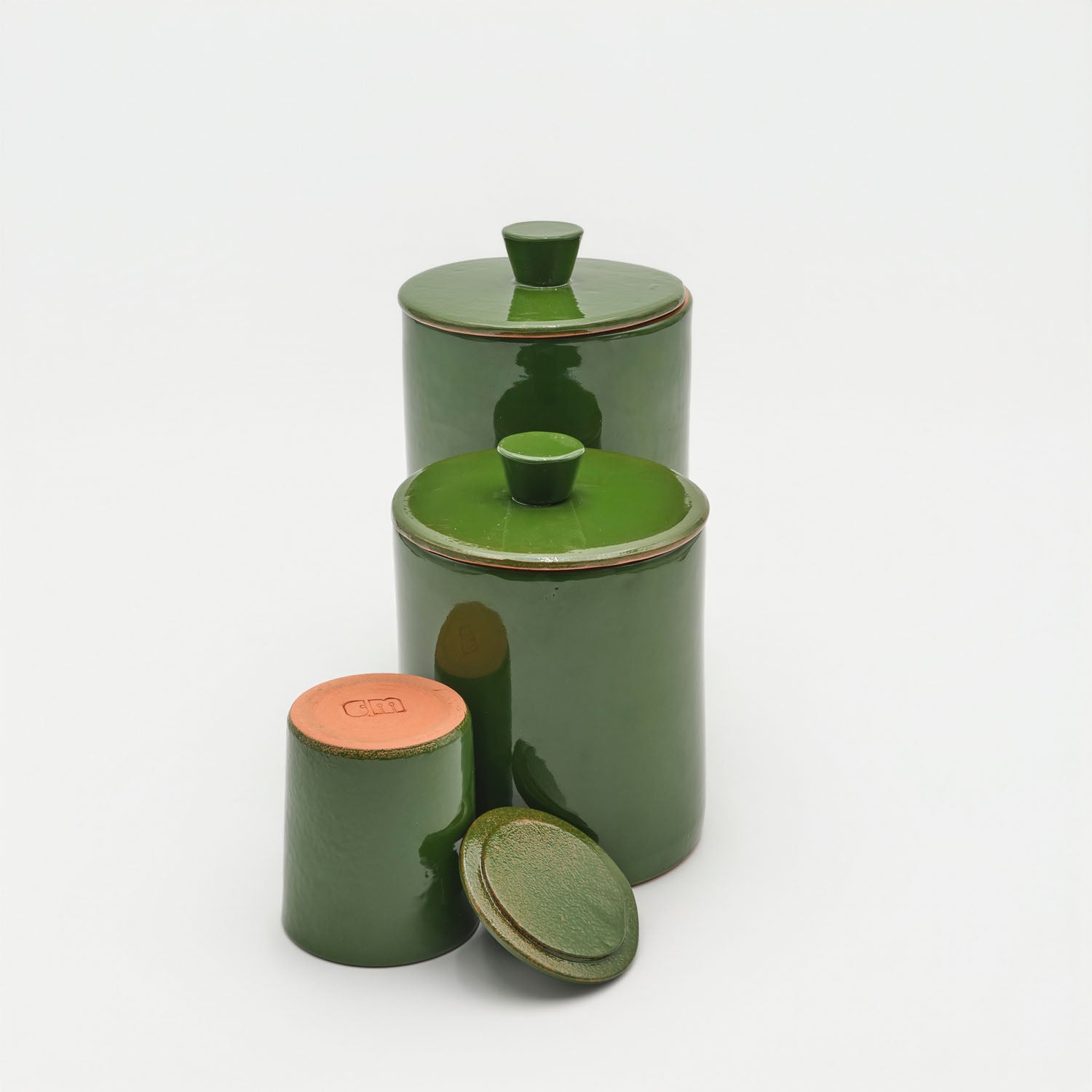Glazed ceramic jar with a lid, perfect for hiding all sorts of treats.
